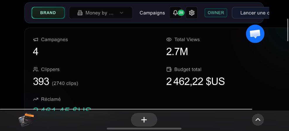 1K€ investis ≈ 1.2M - 1.5M vues